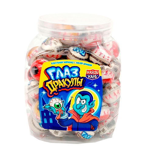 Мармелад, Напитки / СнекиМармелад жевательный Глаз Дракулы c кислой начинкой 15г – это жутко веселое лакомство для любителей оригинальных сладостей!